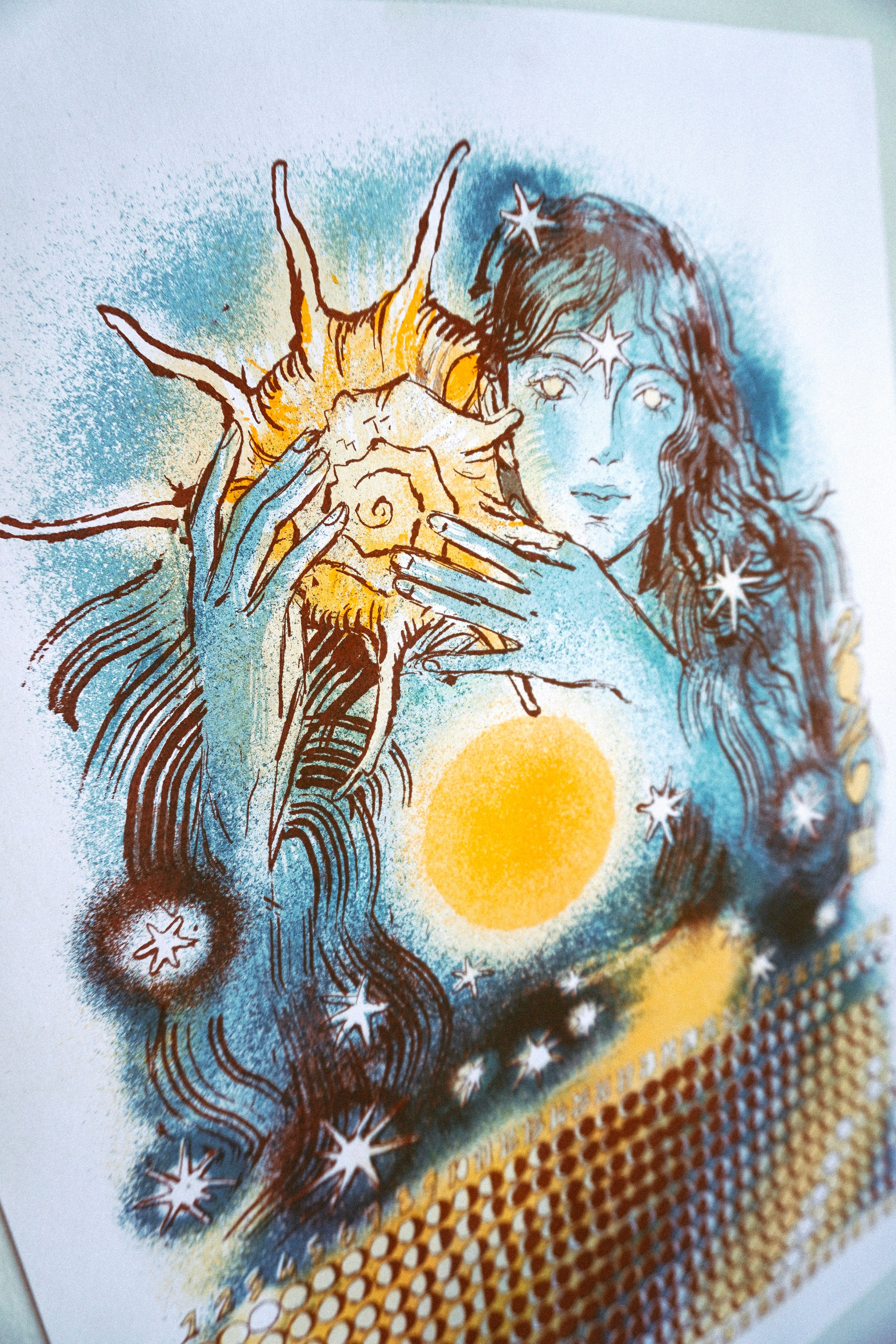 Risograph care: It is best to keep Riso prints out of direct sunlight to prevent the soy-based ink from fading. Any ink marks or smudges on the white paper can be removed with a standard eraser.