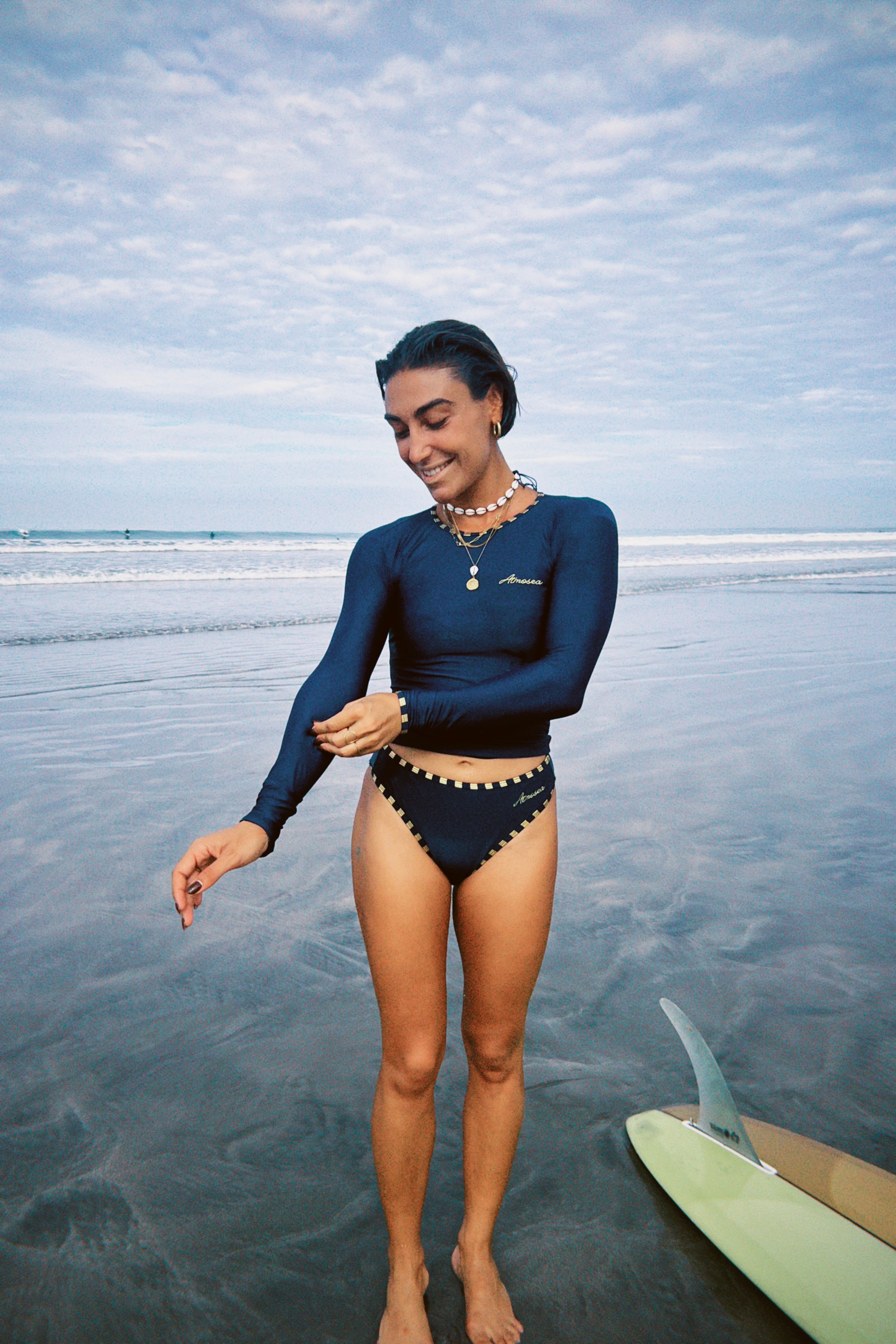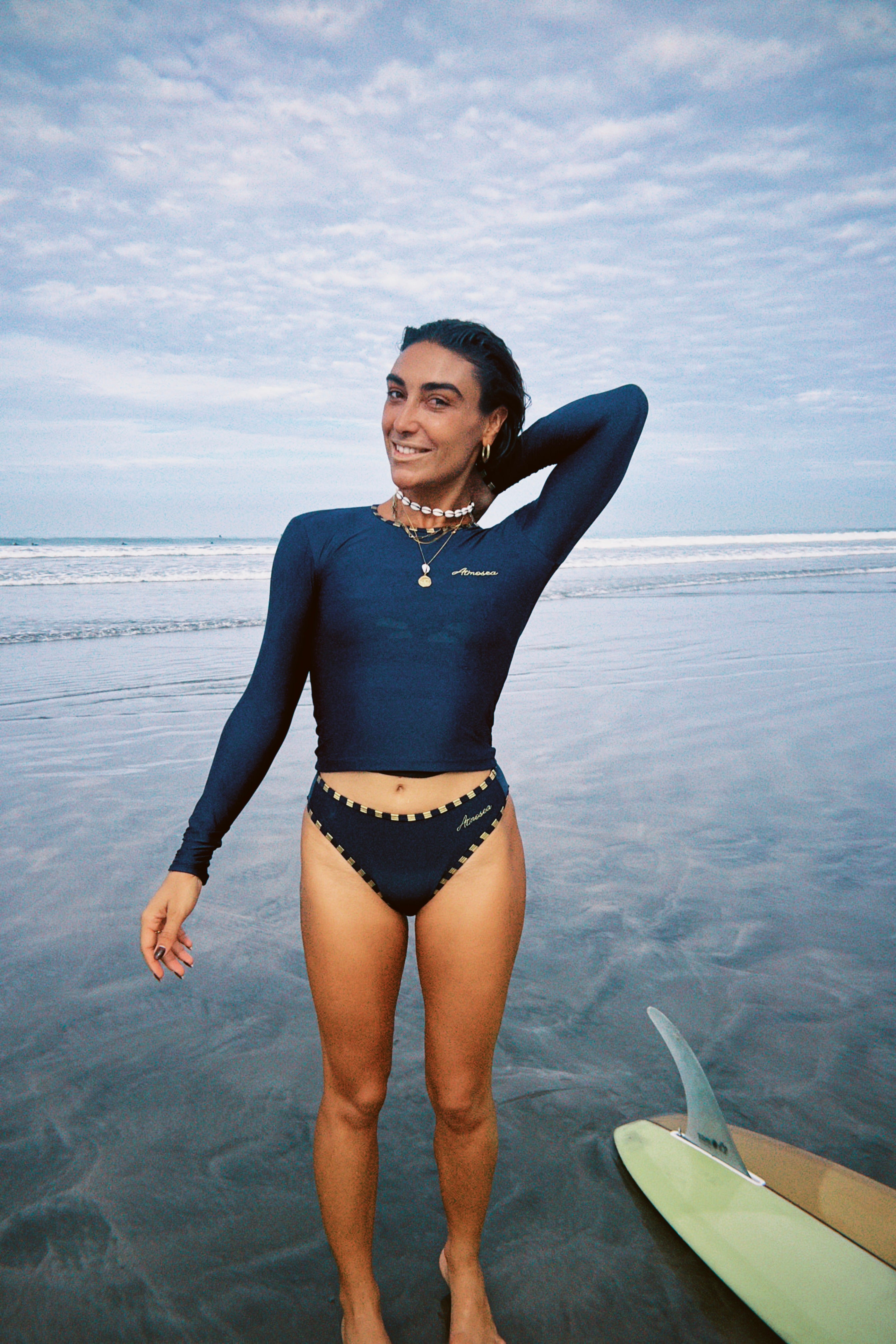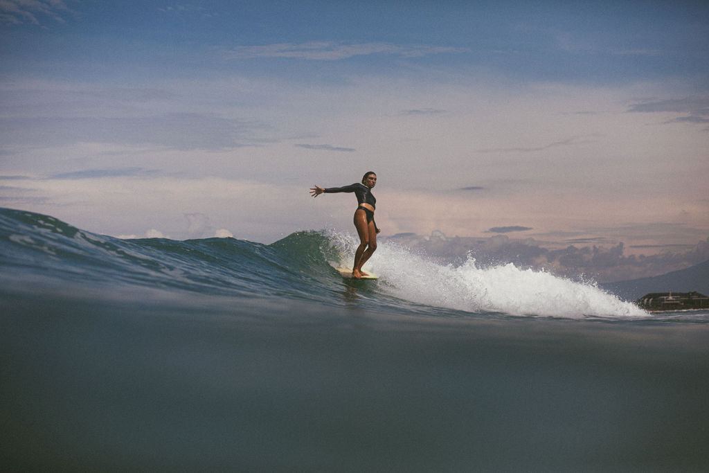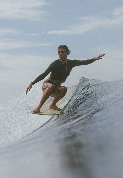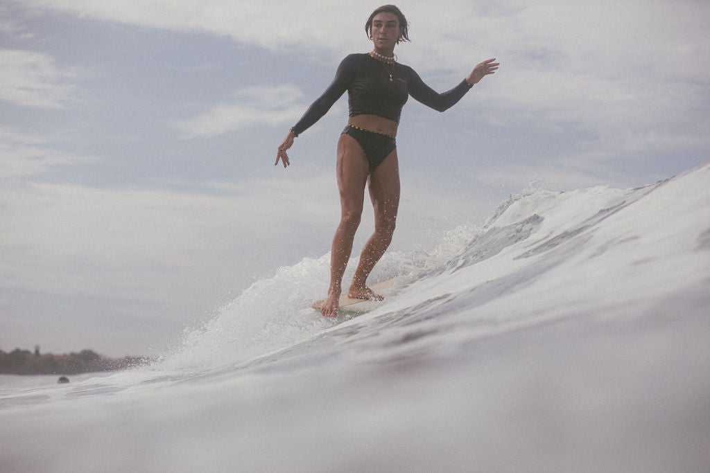 A clean-cut classic with a fresh new fit — the Pacific Crop is slightly longer in length for added comfort and coverage. Crafted from premium recycled lycra in deep navy, with gold and navy stripe binding and golden embroidered branding. A timeless staple made for the surf tourist’s suitcase — reliable, versatile, and ready for every new coastline. Where to next?
