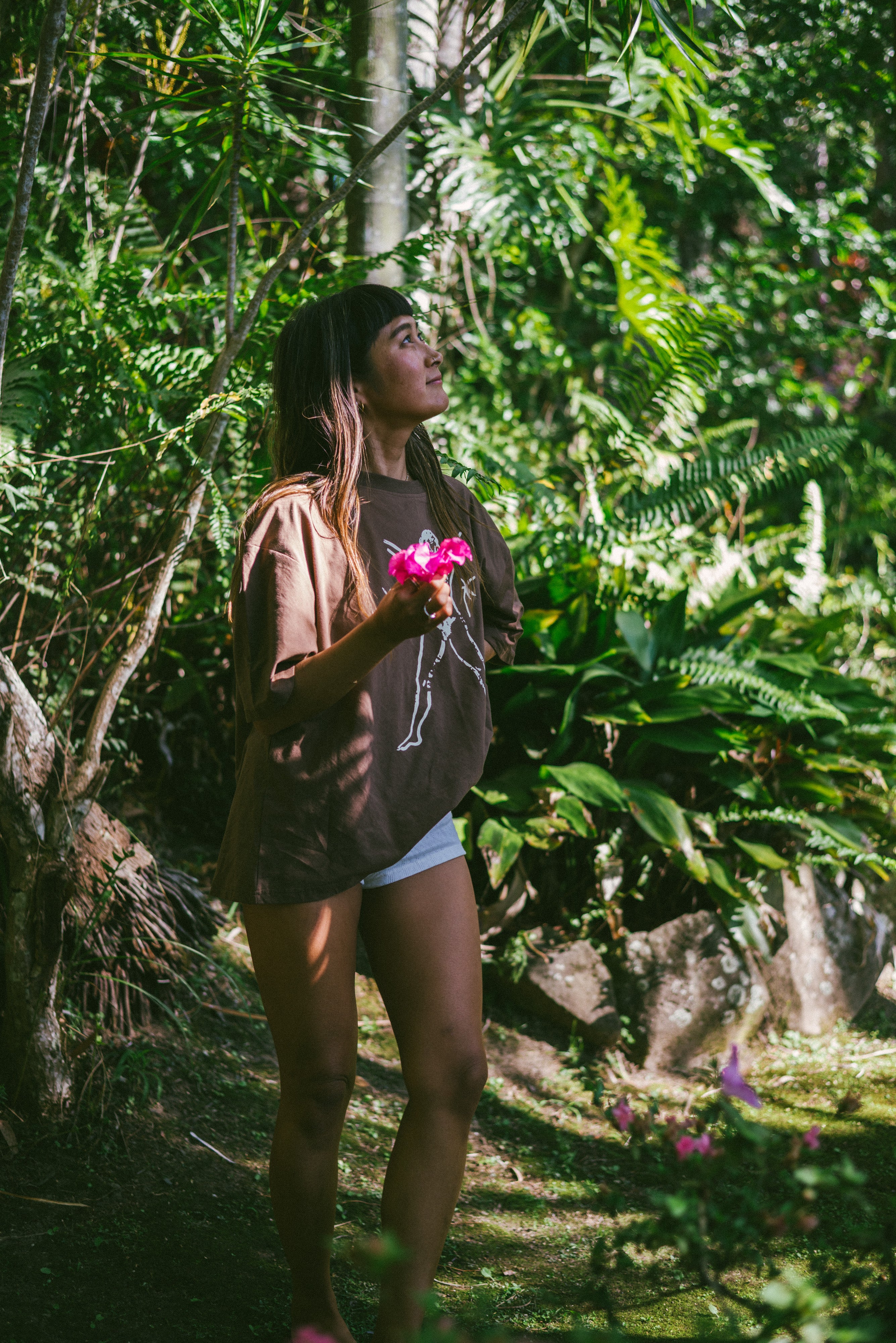 Introducing the Bush Woman tee in a new colourway, honoring the wild woman that lives in us all. The one who runs naked to the waves, who lets it all hang out and is the most beautiful because of it. An oversized fitting t-shirt featuring a slouchy silhouette and finished hem. Cut on the bias for an asymmetric fit. Made 100% Organic Cotton with a softly textured grain.
