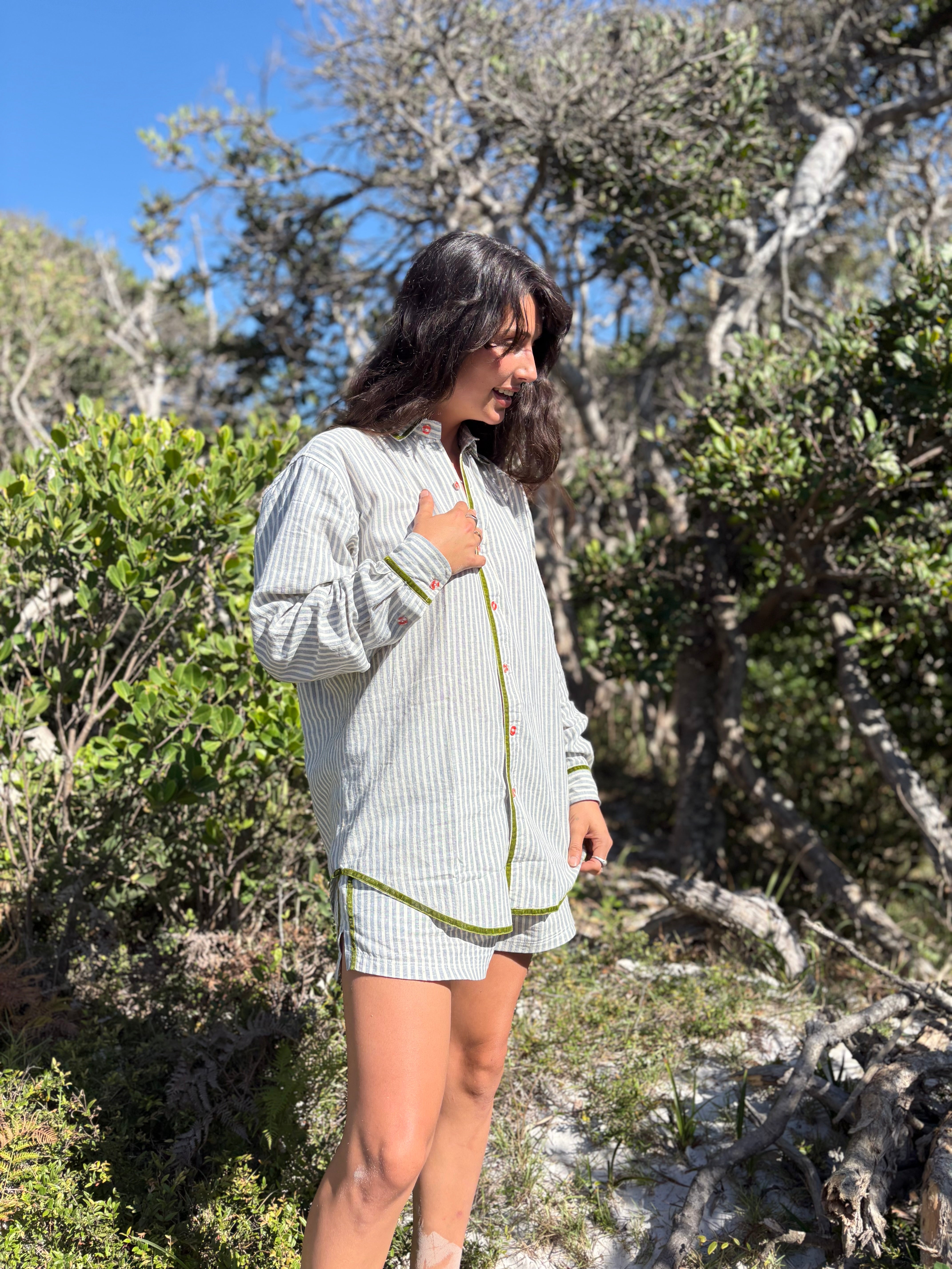 Our classic Atmosea short, reimagined in a timeless coastal stripe with contrast velvet trim.The same relaxed fit you know and love - easy to slip on, easy to live in, and always instyle. Pair with the PJ Shirt for the full set, or wear solo for simple, laid-back charm.