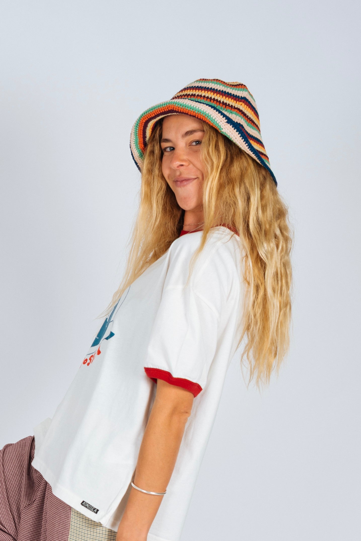 This hand-crocheted hat is made in limited numbers, exclusive to Atmosea, a playful stripe combo that brings the fun wherever you go. Crafted from breathable cotton yarn with a wide brim to keep the sun off your face, it’s the kind of piece you’d stumble upon in a market on your dream holiday. A little bit ‘70s, a little bit sun-safe & ready for your next adventure.
