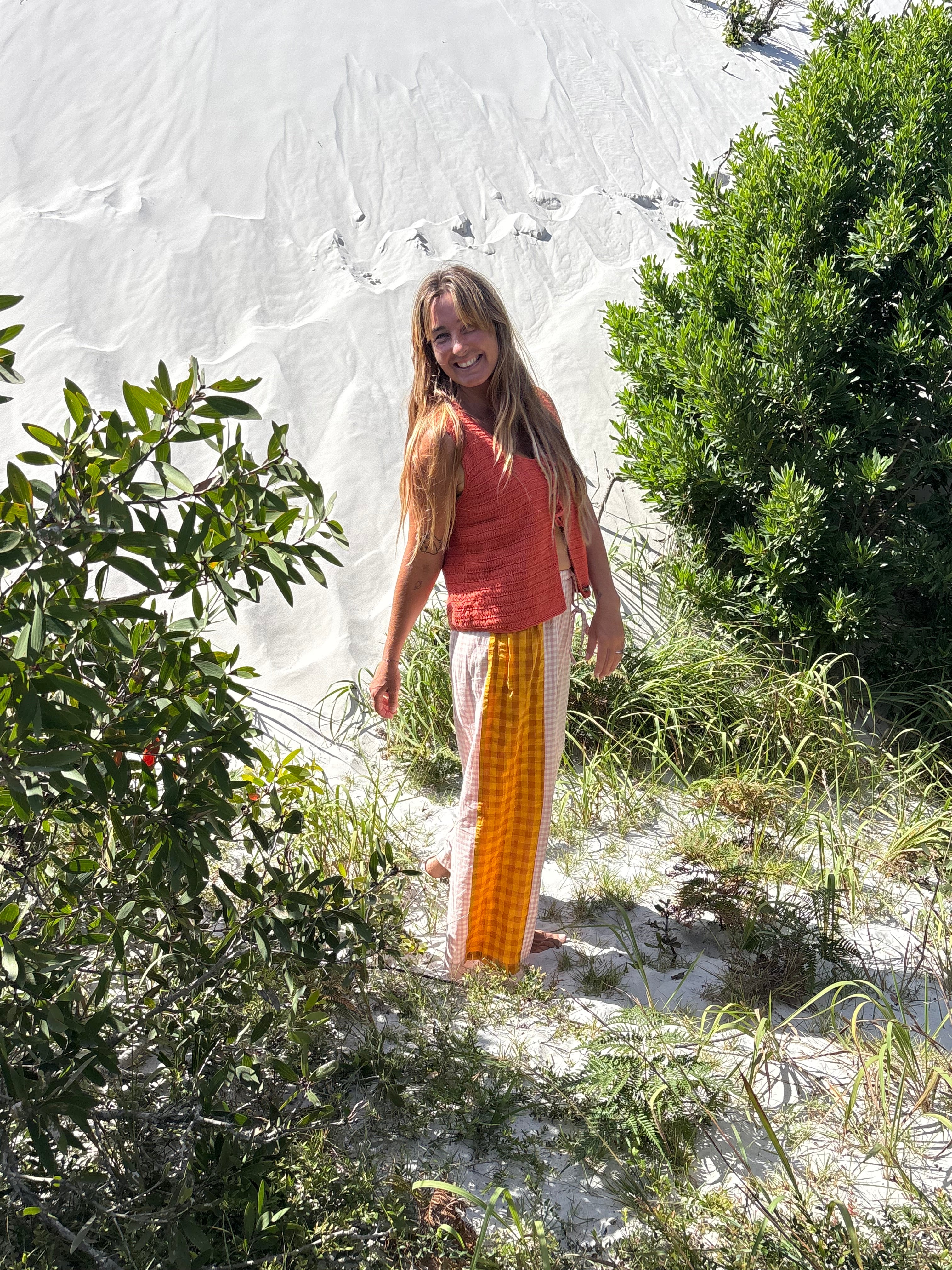 Handmade from 100% Cotton. A vest with weight and natural warmth, handmade from thick cotton crochet. Designed with a sweet little tie closure at the front, it can be worn on its own over swim or layered as the weather cools. With its cosy feel and grounded texture, it’s the kind of piece that makes any outfit feel thoughtful and easy.